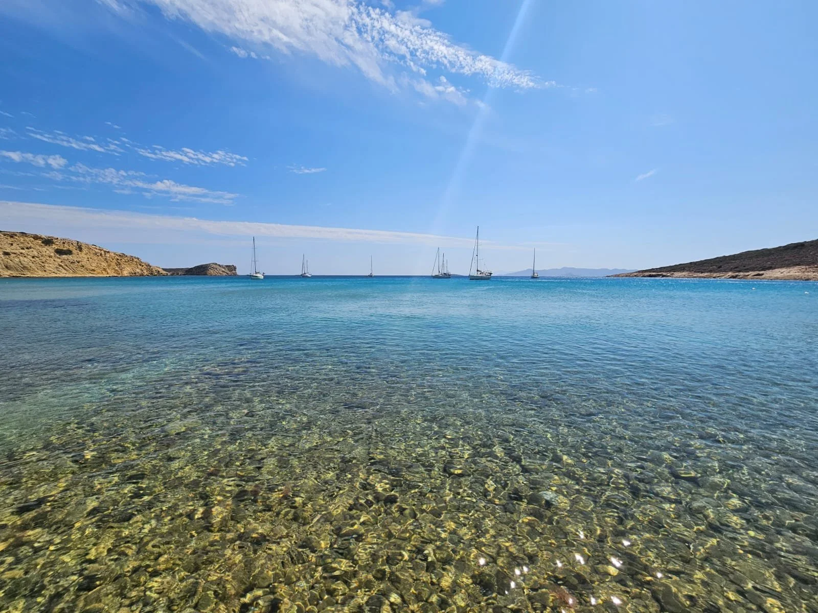 We partner with local skippers to take our guests on a full-day adventure (around 8 hours) exploring hidden beaches, caves, and turquoise bays that can only be reached by sea.The route includes stunning stops at Aspronisia, Tiganakia, Marathi, Arkious, and Macronisi, with a break at a traditional seaside taverna for a delicious local bite.